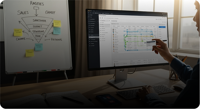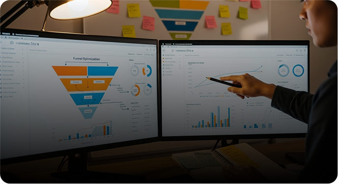 Melhoramos cada etapa da jornada do cliente, do primeiro clique ao fechamento, para aumentar taxa de conversão.